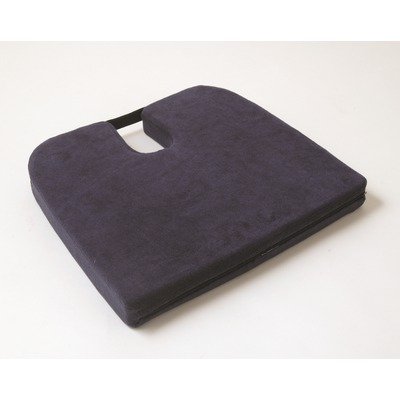VM-02CA Features: -Cushion. -Latex-free and fire retardant. -Coccyx opening relieves pressure of the tail bone and bony prominence areas. -Thermo-sensitive properties respond to your body heat. -Ideal for any chair. -Navy velour washable cover. -Elastic strap secure the cushion to the wheel chair, home chair or car seat. -90 Days warranty. -Dimensions: 2'' H x 18'' W x 18'' D.